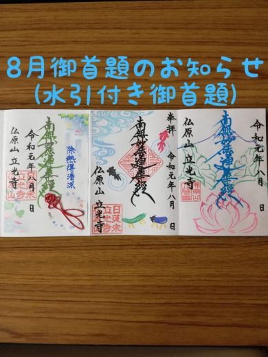 [ 8月 御首題のご案内 ] 8月の御首題をご案内致します。 8月の花は、蓮の華です。當山に咲いている…