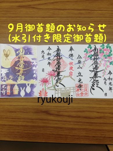 [ 9月 御首題のご案内 ] 9月の御首題をご案内致します。 9月の花は、萩の花です。 行事は、お彼岸…