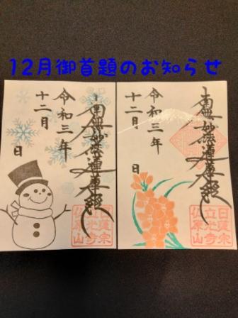 ご覧いただきありがとうございます。 12月御首題のお知らせです。引き続き感染予防にご協力をお願い…