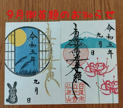 《月替り御首題》 【9月のお知らせ】 ご覧いただきありがとうございます。 朝は涼しい日が増え…