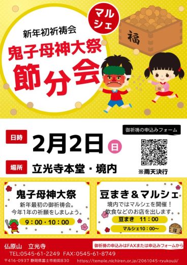 【新年初祈祷会 鬼子母神大祭 節分会】 2月2日(日)は立光寺の祈祷会&豆まきに是非…