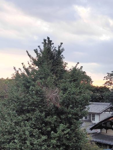 【いちょうの枝が、折れています。ご参詣の際は、十分気をつけてください。】