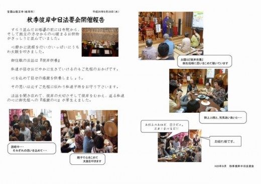 法話を聞き改めて、彼岸の大切さそして彼岸をむかえ、送る私達の心に御先祖への『感謝の心』が芽生えました。