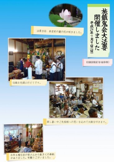 施餓鬼大法要の様子を公開しました ブログ 記事公開日:2017年07月19日 この記事は最終更新日から1年以上経過しています。記事の内容やリンク先については現在と状況が異なる場合がありますのでご注意ください。 平成29年7月9日(日)に開催した盂蘭盆施餓鬼大法要の様子を公開しました。 こちらをクリックするとご覧いただけます。(PDF形式で保存してあります) この記事は最終更新日から1年以上経過しています。記事の内容やリンク先については現在と状況が異なる場合がありますのでご注意ください。 PREV NEXT 一覧へ