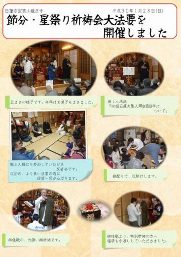 節分・星祭り祈祷会大法要の様子を公開しました ブログ 記事公開日:2018年02月07日 この記事は最終更新日から1年以上経過しています。記事の内容やリンク先については現在と状況が異なる場合がありますのでご注意ください。 平成30年1月28日(日)に開催した、節分・星祭り祈祷会大法要の様子を公開しました。 こちらをクリックするとご覧いただけます。(PDF形式で保存してあります) この記事は最終更新日から1年以上経過しています。記事の内容やリンク先については現在と状況が異なる場合がありますのでご注意ください。 PREV NEXT 一覧へ