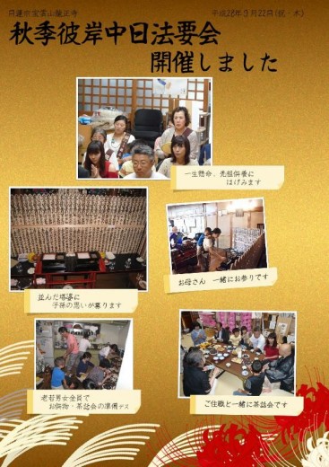 9月22日に行った、秋季彼岸会中日法要会の開催報告を公開しました。 こちらをクリックするとご覧…
