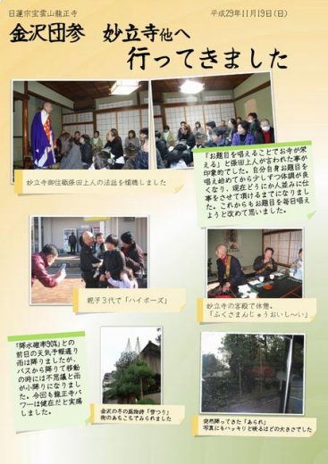 11月19日(日)に龍正寺団参を開催しました。今回の目的地は金沢市妙立寺でした。 その時の様子を公…