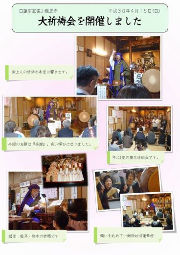 平成30年4月15日(日)に開催した、大祈祷会の様子を公開しました。 こちらをクリックするとご覧…