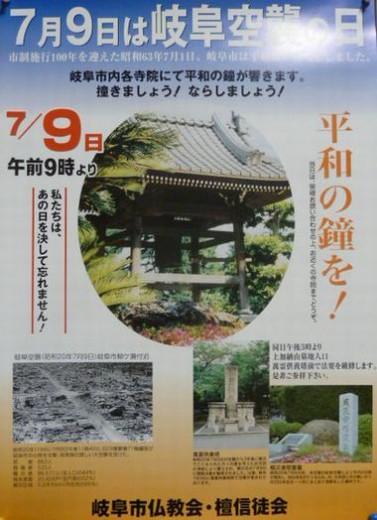 岐阜市仏教会・檀信徒会が中心となって、平和の鐘を岐阜市内の各寺院で鳴らします。