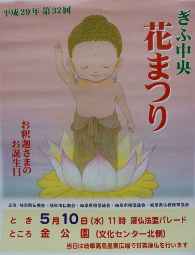 ぎふ中央花まつり のお知らせ 地域情報 記事公開日:2017年05月06日 この記事は最終更新日から1年以上経過しています。記事の内容やリンク先については現在と状況が異なる場合がありますのでご注意ください。 5月10日(水) 午前11時より金(こがね)公園にて、灌仏法要パレードが行われます。 また、岐阜高島屋東側広場で甘茶灌会も行われます。 この記事は最終更新日から1年以上経過しています。記事の内容やリンク先については現在と状況が異なる場合がありますのでご注意ください。 PREV NEXT 一覧へ