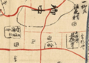 全国的にも珍しく「法華」と呼ばれています。法華とは、法華宗(日蓮宗)の略称名です。もともとは、「法華村」と云われ『尾張地名考』に「村の中に法華堂あり、故に法華村と言うなるべし」とあり、また『尾張徇行記』には、「此の村は農屋七分通りほどは日蓮宗門の徒なり。されば日蓮宗の寺両寺ありて、村中に神祠なし。法華村と名づくるも宣なり」とあり、宗旨から地名ができた事がうかがえます。後に法華村には神社は無かったが、新田開発の産土神として「神明社」が祀られるようになりました。(古地図:寛政頃)