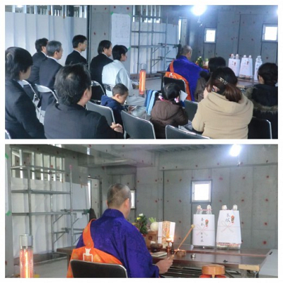 2月2日(木)、8月に地鎮祭を済まされましたお檀家さんの家屋で上棟式を行いました。 棟札を上げ、諸…