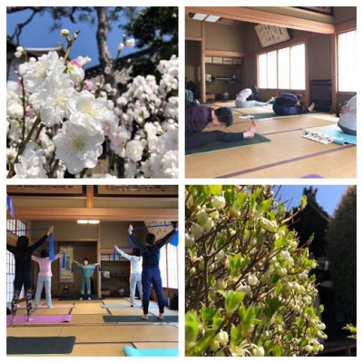 平成31年4月10日(水)今年度最初の寺ヨガを開催しました。 境内では、ドウダンツツジが白く可愛い花…