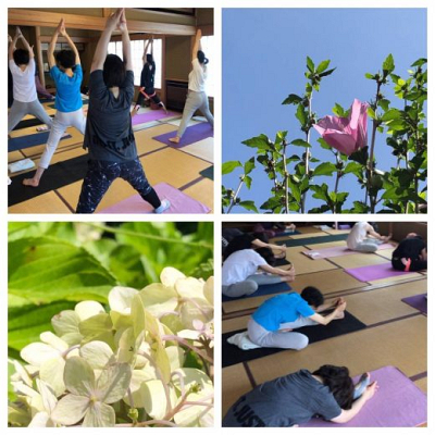 令和元年7月10日(水)寺ヨガを開催いたしました。 小暑の頃。境内ではモントブレチアが緑に覆われた…