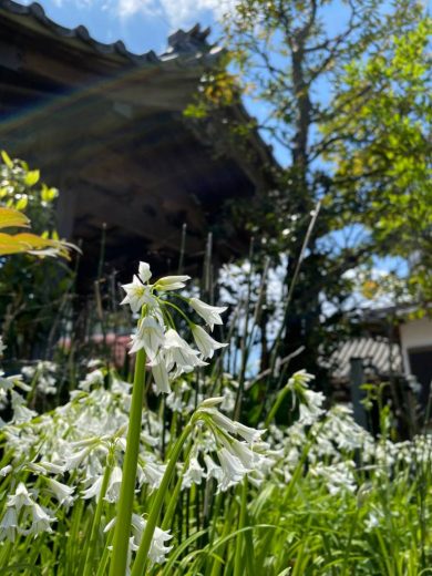 境内に咲いた花(ミツカネドネギ)です。 沢山咲きました。