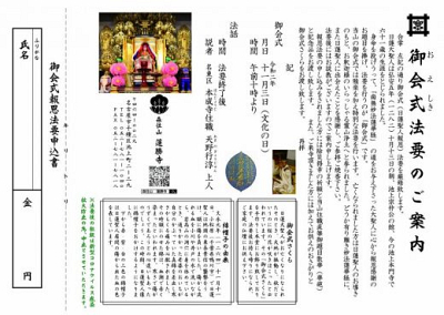 令和2年10月13日(火)午後1時より、当山に於いて11月3日に執り行います御会式(報恩法要)にお飾りす…