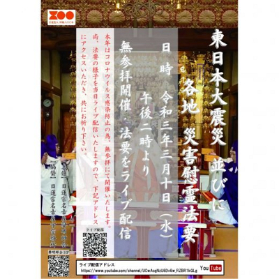 令和3年3月10日(水)午後2時より名古屋聲明師会主催 「東日本大震災 並 各地災害慰霊法要」を執り行…