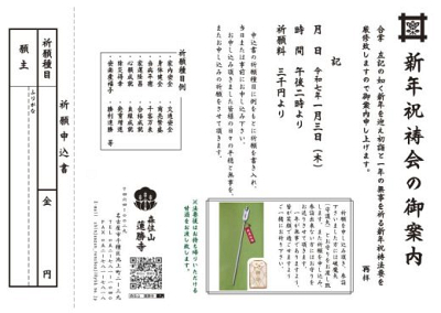 下記の如く、新年を迎え初詣と一年の無事を祈る「新年祝祷会」法要を厳修致しますのでご案内申し上…