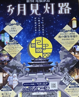 尾張津島お月見灯路 イベント・活動 記事公開日:2025年10月05日 開催日:2025年11月01日 恒例の尾張津島お月見灯路が、11月1日(土)~3日(月)の3日間で開催されます。 尾張津島お月見灯路期間中は、灯篭の灯りに飾られた市内の津島霊場寺院や津島神社をお楽しみいただけます。 イベントスケジュールの詳細は、「尾張津島お月見灯路公式ホームページ https://www.npo-tsushima.org/otsukimi/」をご覧ください。 PREV NEXT 一覧へ