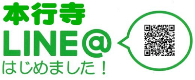 ライン@本行寺があります。毎月の寺報「瓦版」や、行事、勉強会のご案内等を配信しています。ご登録…