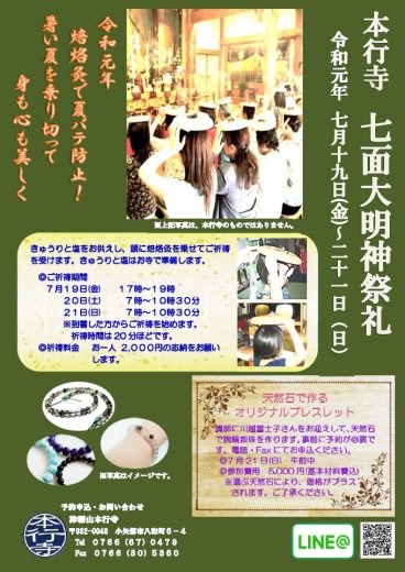 7月の土用の丑の日に焙烙灸の祈願を行いました。本行寺境内にある「七面堂」で行います。七面大明神…