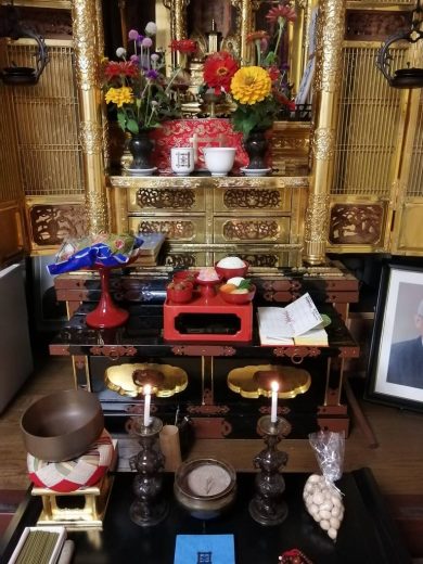 お月参りに行ったお宅のお仏壇の写真です。お霊供膳が供えてあります。そして、私に同じお昼ご飯をご…