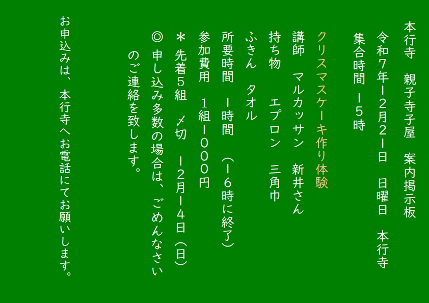 12月の寺子屋教室のご案内