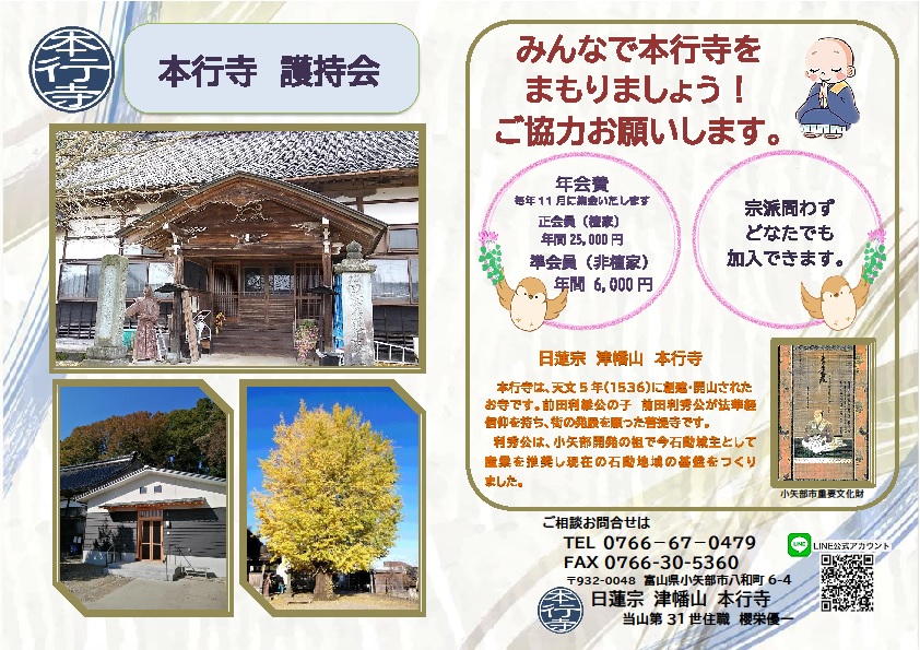 本行寺の行事に参加しましょう。年会費はお寺を維持するために大切に使用されています。