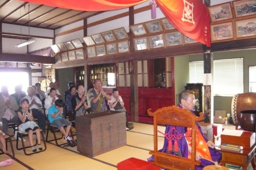 6月24日(日)、磐田市の神心教本部の方々24名が団参に来られました。恐らく、妙應寺開創以来初めてのことでしょうね。ことの次第は?1週間ほど前にJTBのHさんから電話が入りました。「団参お願いしたいんですけど。」「うちのお寺にはお見せするようなもの何もないですけど。有名な妙立寺(通称忍者寺)さんに行かれたら。」「小さいお子さんがいるので断られました。」「でも何でうちの寺なの?」「日蓮宗のホームページに出てました。」ああ、そうか。日蓮宗のポータルサイトに妙應寺のページを掲載したのが、6月7日。石川県ではうちの寺しかまだ載ってないからか。うちのような寺でもいいのかな、と内心気が引けながら、お引き受けし、今日の日を迎えました。枯木祖師の御開帳の後、うちの寺には見ていただくものはないので、卯辰山山麓の日蓮宗寺院を11カ寺案内させていただきました。この地域は今年、国の重要建築物保存地区に選定された地域で、昔ながらの風情が残っており、皆さんに喜んでいただけたようで、ほっとしております。それにしても、ホームページの力って凄いですね。この記事を読まれた方で、興味をもたれましたら、是非ご連絡下さい。