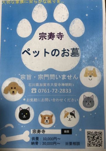 動物供養、納骨の申し込みは宗寿寺、下記の電話番号にご連絡下さい。