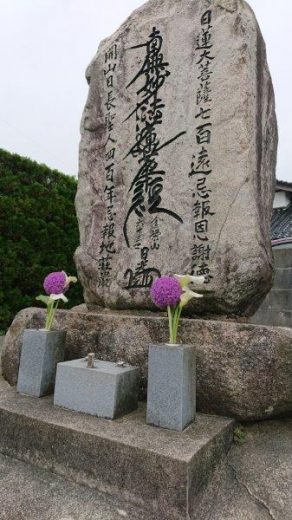 さっそく、玉寿寺のお題目宝塔(写真)や、妙成寺の宝塔、玉寿寺の歴代墓などに、お花をお供えさせて頂きました。