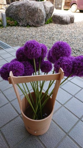 本日、志賀町高浜の三原吉夫さんから、「アリウムギガンチウム」のお花を頂きました。新型コロナウイルスの影響で、二ヶ月ご自宅でのお経参りを中止していたので、久しぶりにお経にお伺いし、帰りに「持って帰って下さい」と、沢山のお花や、新玉ねぎを車のトランクに乗せて下さいました。