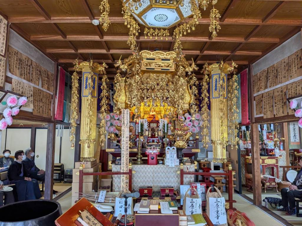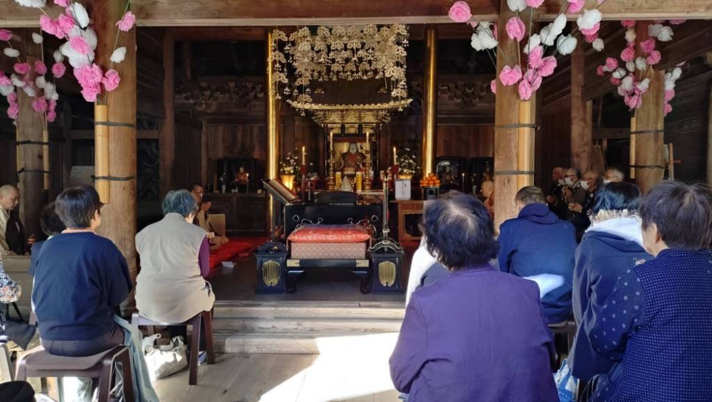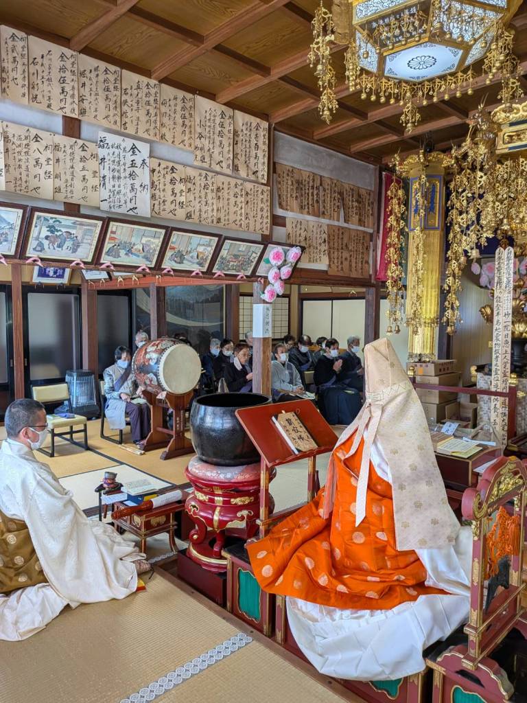 午後1時より、本山妙成寺祖師堂にてお会式法要が営まれました。玉寿寺に参拝された方の中には、当山で昼食のお弁当を食べ、引き続き午後からの妙成寺も参拝される篤信の方がおられます。今年も7名の方が妙成寺もお参りされました。