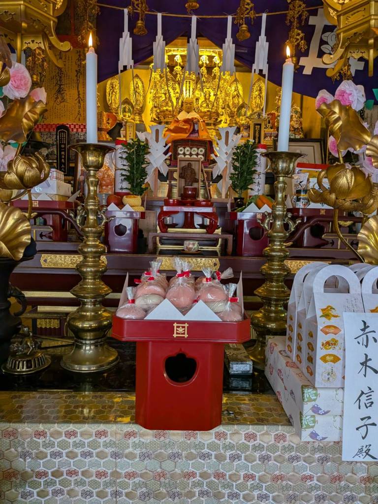 11時より玉寿寺にて宗祖日蓮大聖人第744遠忌のお会式法要を執り行いました。浄心寺ご住職の藤田哲朗上人にもご出座して頂きました。お会式には必ず紅白の小餅を個包装したものを沢山お供えし、参詣の方にお配りします。仕方ないことですが業者の方の話では、昨年から米の高騰で、もち米の仕入れ値も以前の2倍になり大変だそうです。今回お餅の値段が上がりましたので、餅のサイズを少し小さくして対応しました。何卒ご了承ください。気づかれた方いるかな?