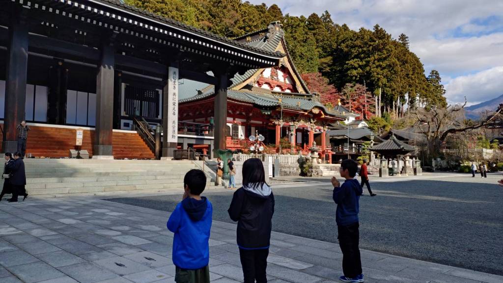 🔶翌週の土曜日には、毎年欠かさず家族で行っている日蓮宗総本山身延山久遠寺の参拝に行ってきました。往路は初めて岐阜県の高山から中部縦貫道を利用してみました。上越回りと所要時間は変わりませんでしたが、途中奥飛騨の山のいただきは雪景色で気温がマイナス2度の所もありました。もちろんタイヤはスタッドレスに交換してあります。紅葉の残る身延山は好天でとてもあたたかく、日蓮聖人の御廟所と久遠寺を参拝させて頂きました。