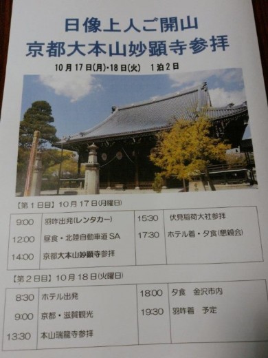 本年の団参は、10月17・18日に京都の日蓮宗大本山妙顕寺様と、滋賀の本山瑞龍寺様を参拝します。 …