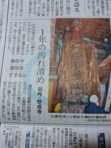 12月15日、正月を迎えるにあたり、羽咋市本山妙成寺丈六堂のお釈迦様や五重塔の「すす払い」が行わ…