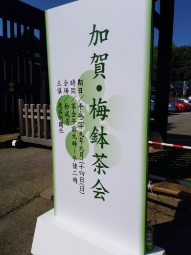 10月24日、羽咋市本山妙成寺(駒野日高貫首)にて「梅鉢茶会」が開催されました。 梅鉢茶会は、…