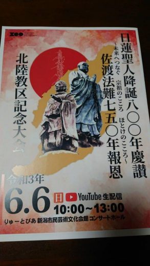 6月6日(日曜日)、北陸の日蓮宗(石川・福井・富山・新潟)に於ける日蓮聖人降誕800年慶讃ならびに…