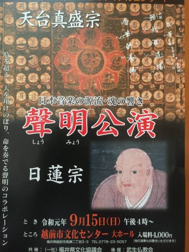 毎年開催されている「武生国際音楽祭」 今年は、最終日に日蓮宗の聲明を唱えさせて頂きます。 県の…
