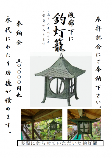 ※こちら釣燈籠をご奉納していただいた方は釣燈籠にお名前を記入し、永代に渡ってお寺の記録に載せ…