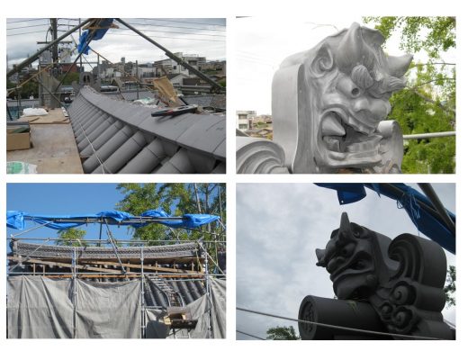 大棟修繕にあたり、鬼瓦が据えられました。東に口を開けた阿形、西に口を閉じた吽形。陰陽を表すそうで阿形が陽、吽形が陰にあたるそうです。