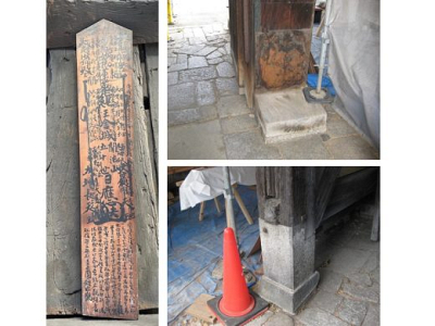 山門修繕にあたり、事前に調査しましたところ、地盤が沈下し北側に5センチ傾いていることがわか…