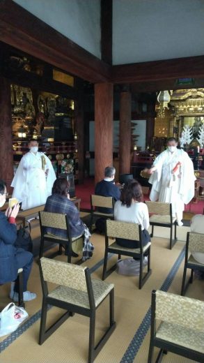 令和4年1月19日に毎月19日恒例行事「七面大明神例祭」(法華経を信仰する人々を守る神様で、当山の七…