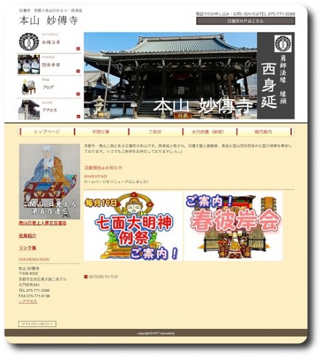 ちなみに、本山 妙傳寺のHP (ホームページ)がリニューアルされましたきらきらうえ