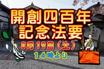 開創四百年記念法要 日時:8月19日(土) 時間:14時~16時 参加費:お布…