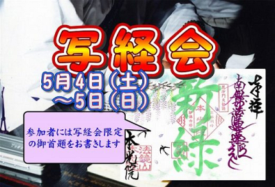 GWに修行しませんか? ■写経会のご案内 5月4日(土) 5月5…
