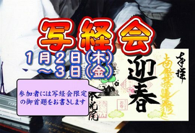 ■写経会のご案内■ {{{1月2日(木)~2日(金) 時間:9時3…