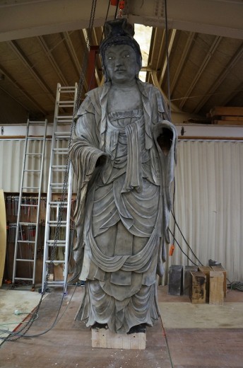 彫刻の初期段階では、観音様の制作に携わりたいと志願された方々が全国各地から集まり、一人一人が思いを込めてノミをいれたそうです。これまでは完成してから手を合わせ祈っていた仏像が、今回は東日本大震災を受けて供養や復興への祈りが仏像を形づけていました。