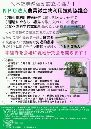 本福寺僧侶が設立に協力したNPO法人農業微生物利用技術協議会は、環境にやさしい農業の推進や食への…